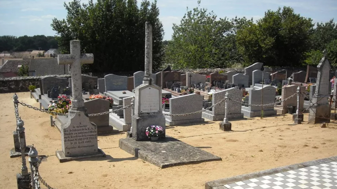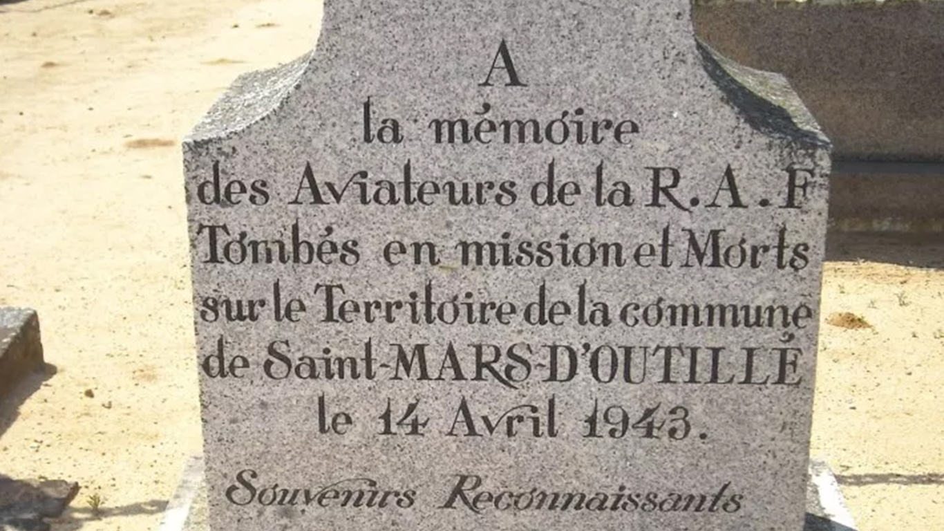 Pendant la Seconde Guerre mondiale, en 1943, l'Europe est largement occupée par l'Allemagne nazie. L'aviation alliée joue un rôle crucial dans la reconquête aérienne, notamment à travers les bombardements stratégiques menés sur des cibles industrielles et militaires. Le Royaume-Uni devient alors une véritable base arrière pour les forces alliées, en particulier pour les bombardements de nuit réalisés par la Royal Air Force (RAF). En parallèle, l'US Air Force (USAAF) mène des missions diurnes, dans le cadre d'une stratégie de harcèlement continu contre les infrastructures ennemies. Dans la nuit du 13 au 14 avril 1943, plus de 200 bombardiers britanniques Lancaster participent à un raid visant le port de La Spezia, en Italie, un site stratégique pour la marine allemande. Ce type d'opération, nécessitant un vol de plus de 2 600 km aller-retour, était particulièrement risqué en raison de la fatigue des équipages, des conditions météorologiques et de la menace ennemie. Au retour de la mission, au-dessus de la France occupée, deux bombardiers des 12e et 103e escadrons de la RAF entrent en collision en plein vol. L'accrochage, survenu aux alentours de 1h du matin, entraîne la chute des deux appareils sur le territoire de la commune de Saint-Mars-d'Outillé. Les 14 aviateurs à bord périssent dans le crash. Parmi eux, quatre étaient Canadiens, illustrant l'engagement du Commonwealth aux côtés du Royaume-Uni dans l'effort de guerre. Au matin du 14 avril 1943, la population découvre les débris des avions. Malgré la présence des forces d'occupation et les restrictions imposées, le maire de la commune, Armand Legeay, ainsi que les élus locaux, décident de rendre hommage aux aviateurs tombés en mission. Cet acte de mémoire, réalisé en pleine guerre, témoigne du respect et de la reconnaissance des habitants envers ceux qui ont perdu la vie en combattant pour la libération de l'Europe. Aujourd'hui, les 14 aviateurs reposent au cimetière de l'Ouest du Mans, mais le carré militaire du cimetière de Saint-Mars-d'Outillé demeure un lieu de mémoire essentiel, marqué par l'inscription commémorative. Il symbolise à la fois l'histoire locale et le lien entre cette petite commune de la Sarthe et les événements majeurs du conflit mondial. Le carré militaire est un espace délimité au sein du cimetière communal, aménagé pour honorer la mémoire des aviateurs disparus. Il se distingue par une stèle portant l'inscription dédiée aux 14 membres d'équipage. L'ensemble, sobre et solennel, est entretenu dans le cadre du devoir de mémoire.